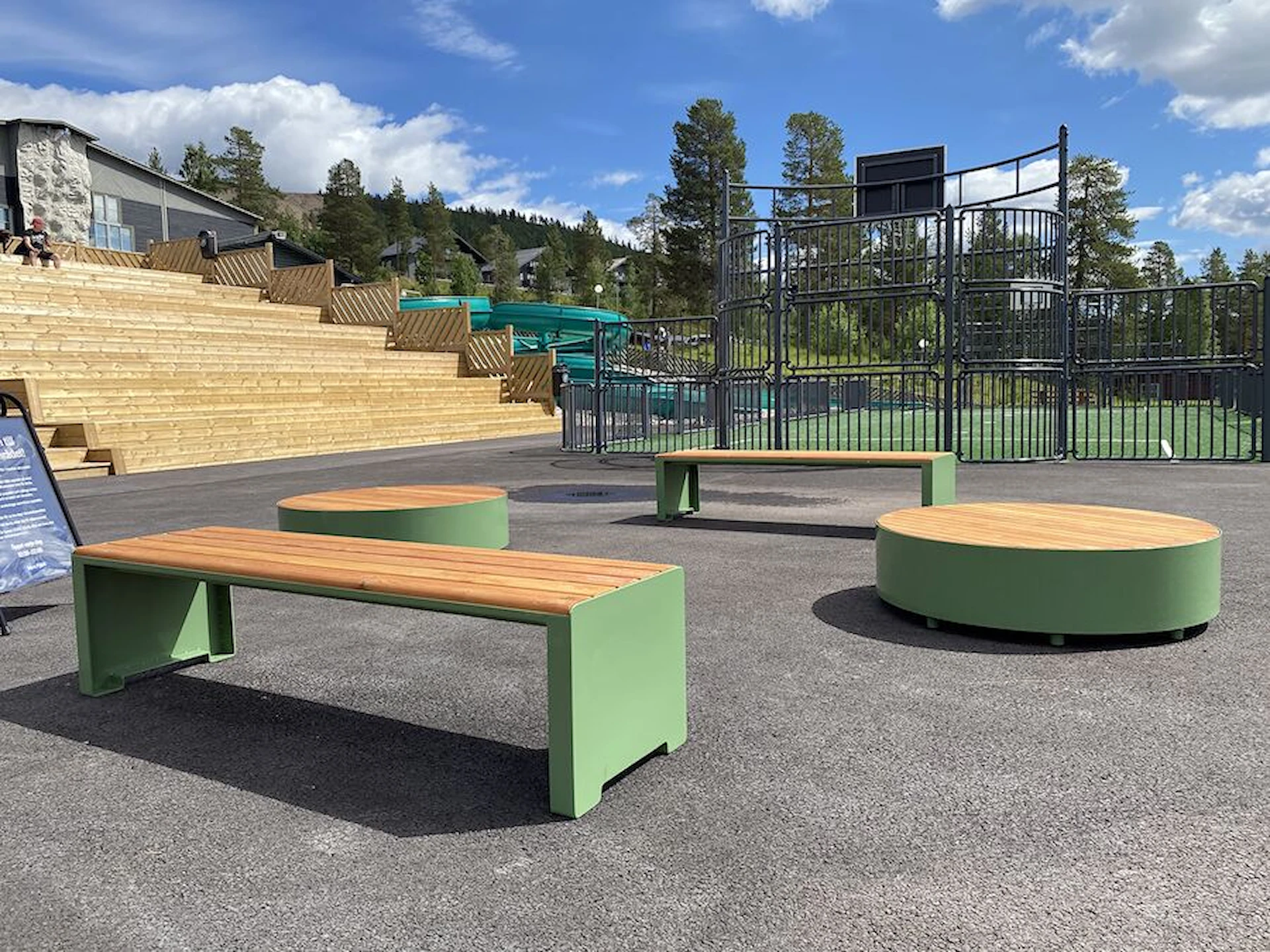 Däremot har vi många produkter utan trä som kan levereras i stort sett omgående, exempelvis Boulder Rocks, gungor, mål, basket, bordtennis, fristående rutschar, klätternät, studsmattor, bänkbord med mera.