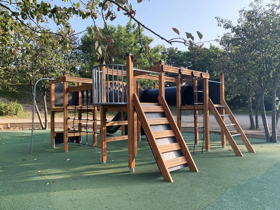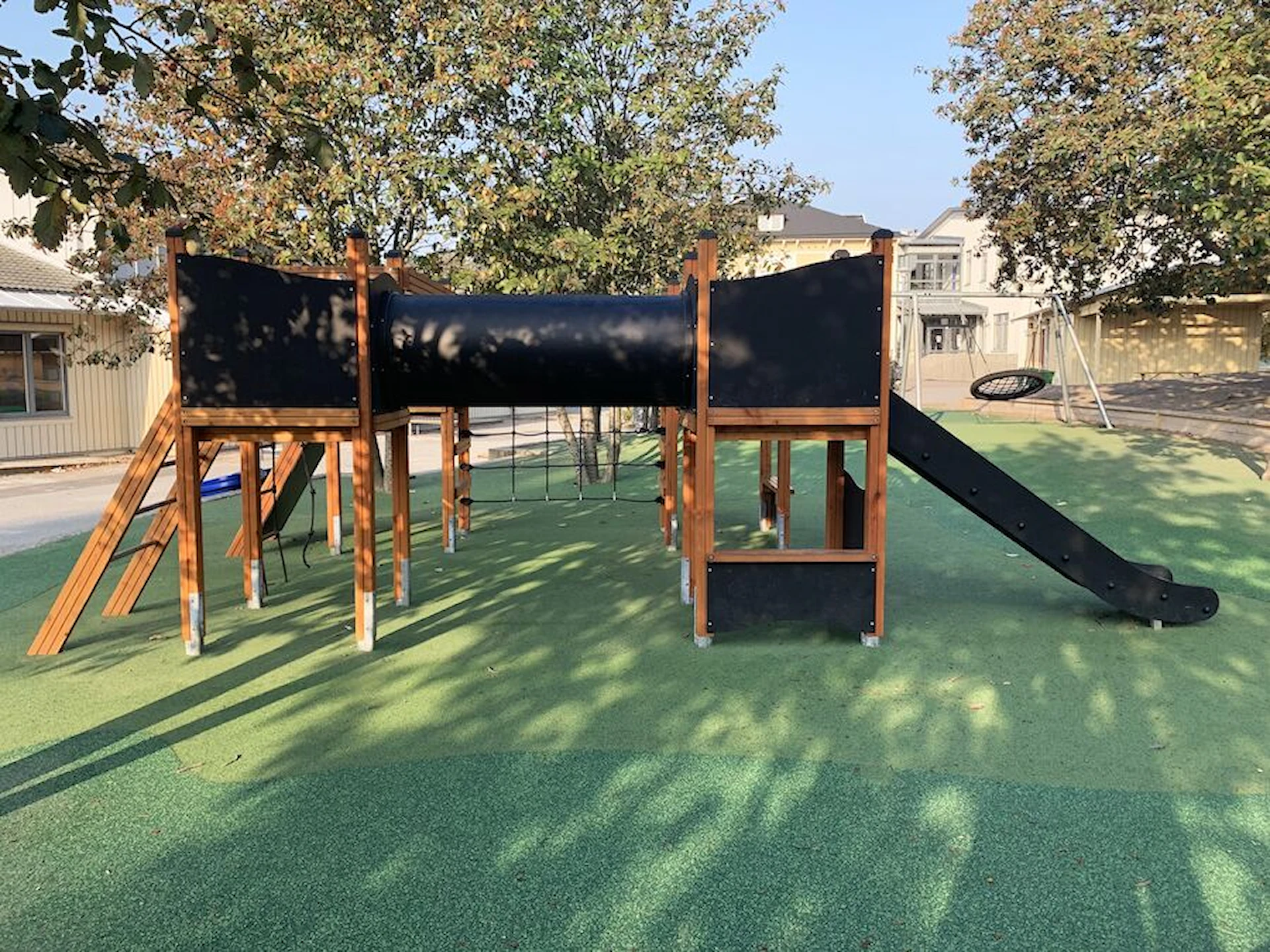 Däremot har vi många produkter utan trä som kan levereras i stort sett omgående, exempelvis Boulder Rocks, gungor, mål, basket, bordtennis, fristående rutschar, klätternät, studsmattor, bänkbord med mera.
