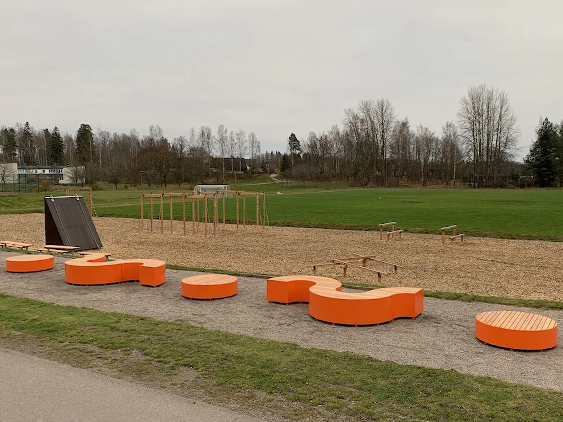 Däremot har vi många produkter utan trä som kan levereras i stort sett omgående, exempelvis Boulder Rocks, gungor, mål, basket, bordtennis, fristående rutschar, klätternät, studsmattor, bänkbord med mera.