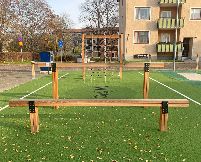 Med dessa produkter behöver du inte tänka på att hägna in eller separera träningsområdet från lekplatsen. All utrustning är godkänd enligt lekplatsstandarden EN 1176.