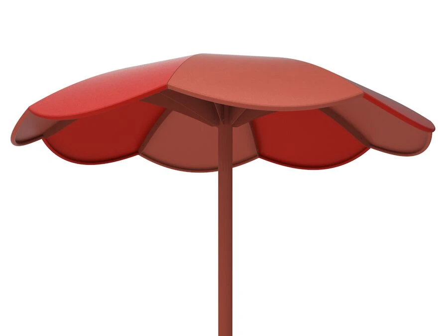 Ivy Nyans Parasoll erbjuds i två storlekar, 290 cm och 240 cm i diameter. Parasollet gjuts ner i marken och står stadigt år efter år. Genom att lägga till anti-graffiti-lack kan du placera ditt parasoll även i offentliga utemiljöer med högre slitage.