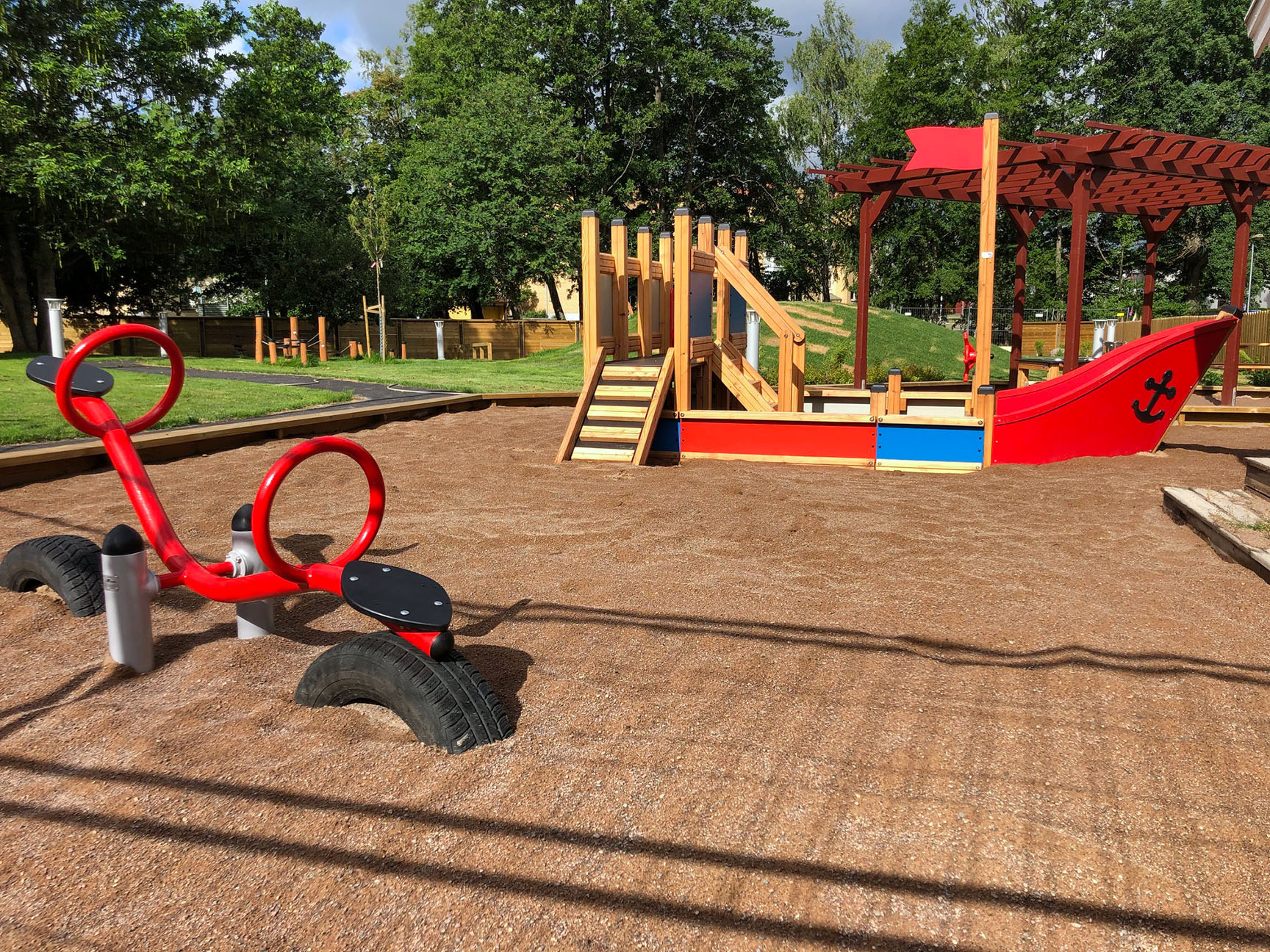 Däremot har vi många produkter utan trä som kan levereras i stort sett omgående, exempelvis Boulder Rocks, gungor, mål, basket, bordtennis, fristående rutschar, klätternät, studsmattor, bänkbord med mera.