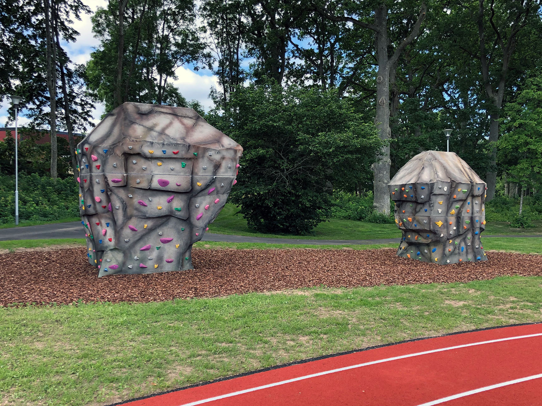Flisen läggs i ett tjockt lager direkt på marken under och runt lekutrustning med fallhöjd. Den formas enkelt efter lekplatsens utformning och ger ett naturligt och dränerande underlag.