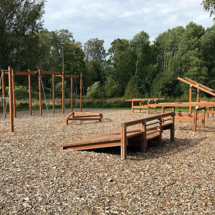 Fallskyddsflis är ett miljövänligt, prisvärt och dränerande underlag som ger god stötdämpning. Det är lätt att installera och passar bra för naturlika lekplatser.