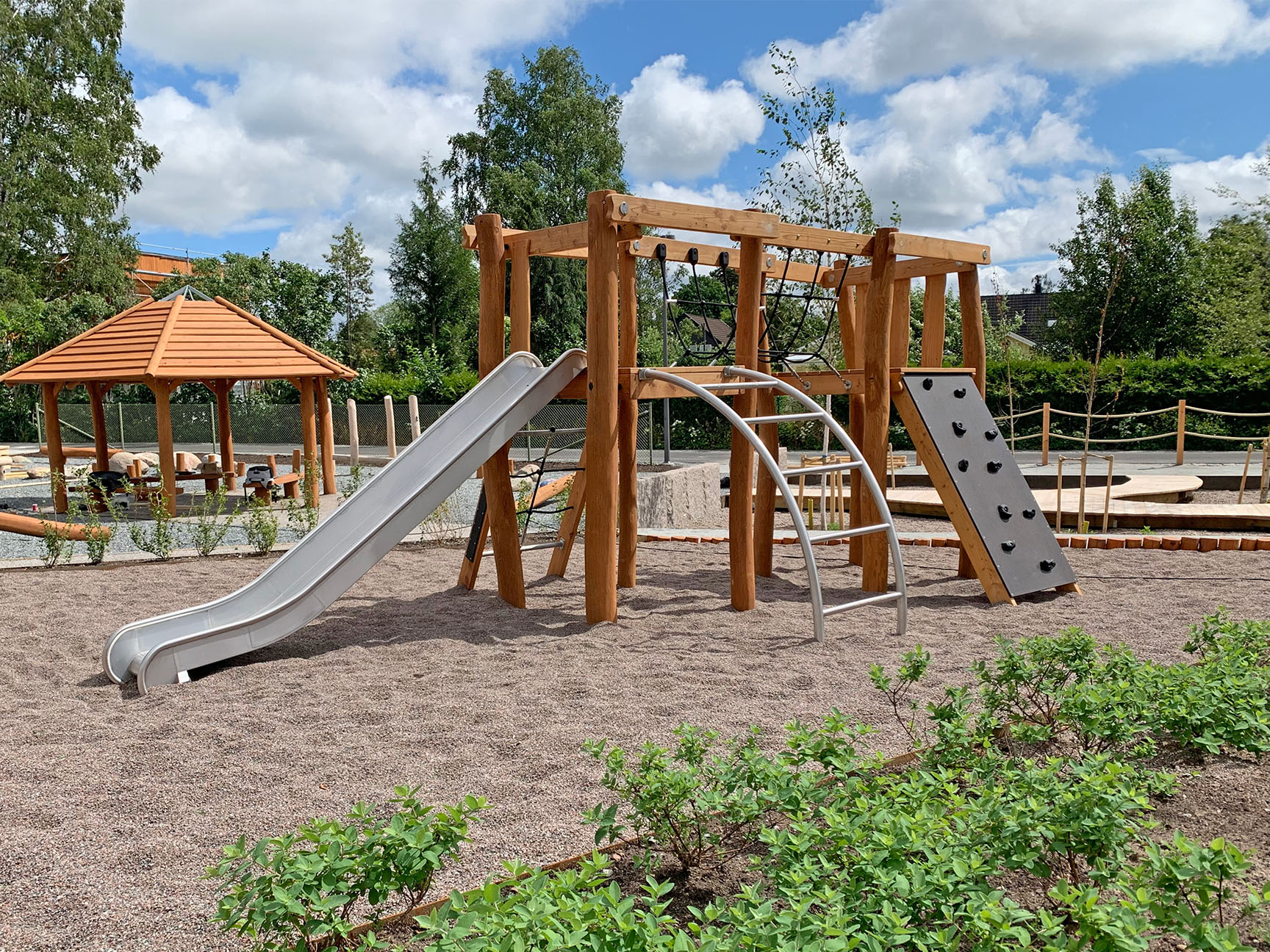 Lekplatsserien Raw Nature följer naturens vackra former, främst med hjälp av träslaget robinia. Kombinationen av robinia, lärk och rostfritt stål är visuellt tilltalande och dessutom underhållsfritt. Här finns det alla möjligheter att planera och inreda din nya lekplats med naturen som inspirationskälla.