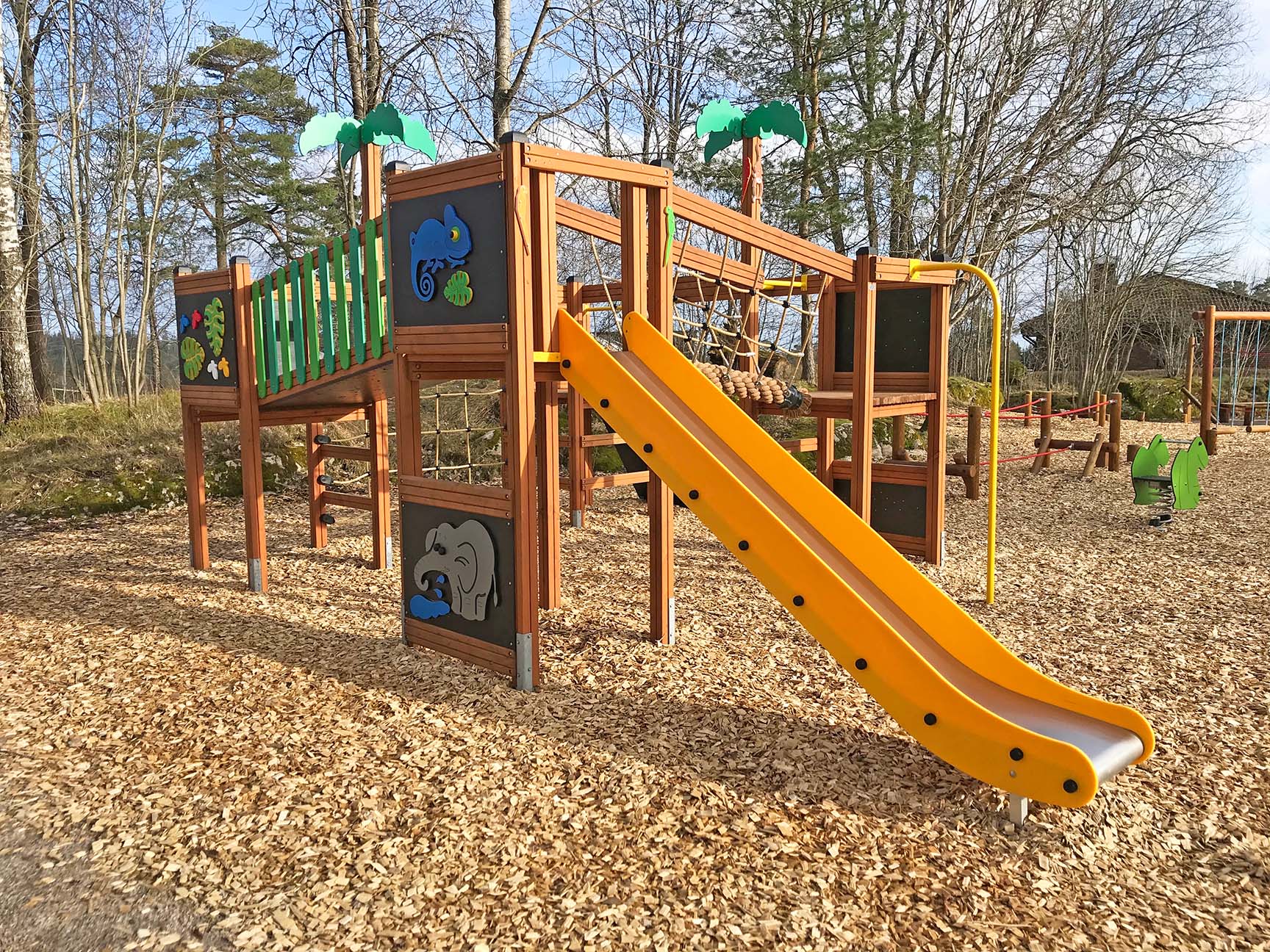 Djungeltema på lekplatsen för vågliga klättrare