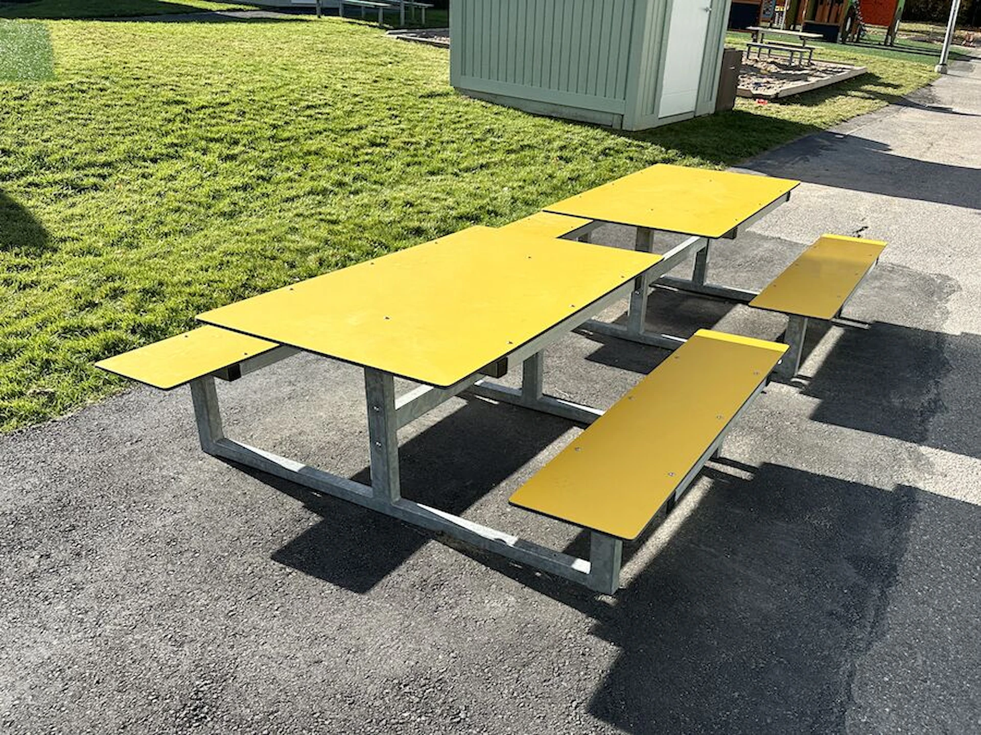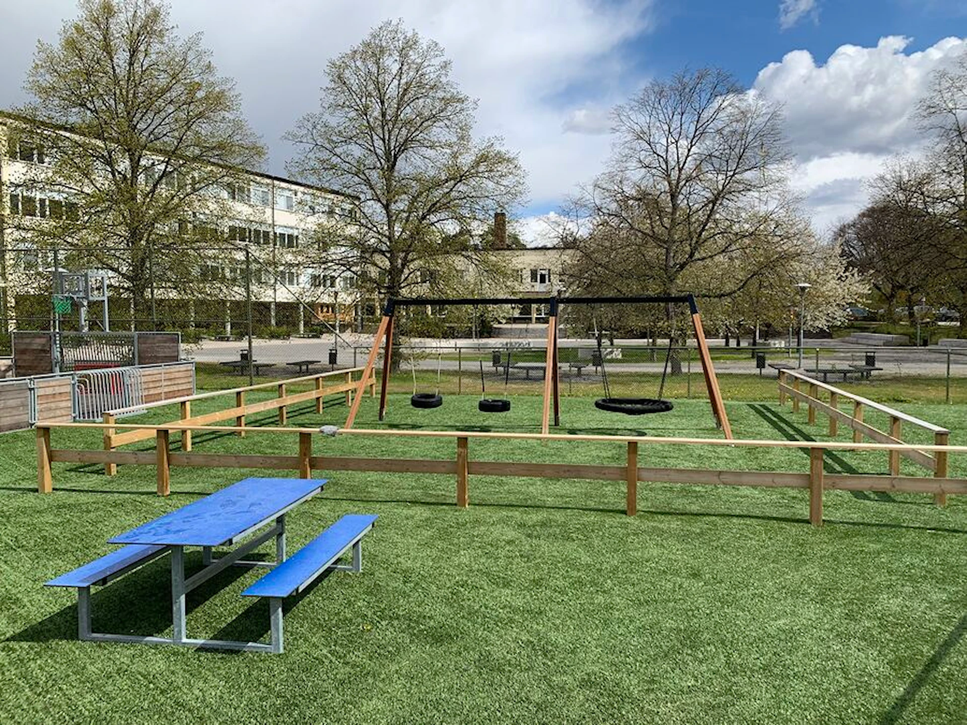 Däremot har vi många produkter utan trä som kan levereras i stort sett omgående, exempelvis Boulder Rocks, gungor, mål, basket, bordtennis, fristående rutschar, klätternät, studsmattor, bänkbord med mera.