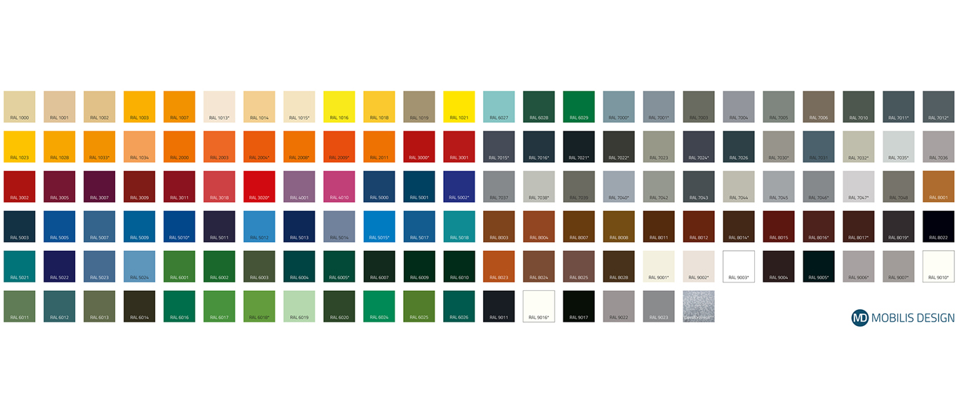 Här ser ni vilken RAL-färg vi valt när vi designade våra Mobilis Design möbelfamiljer: