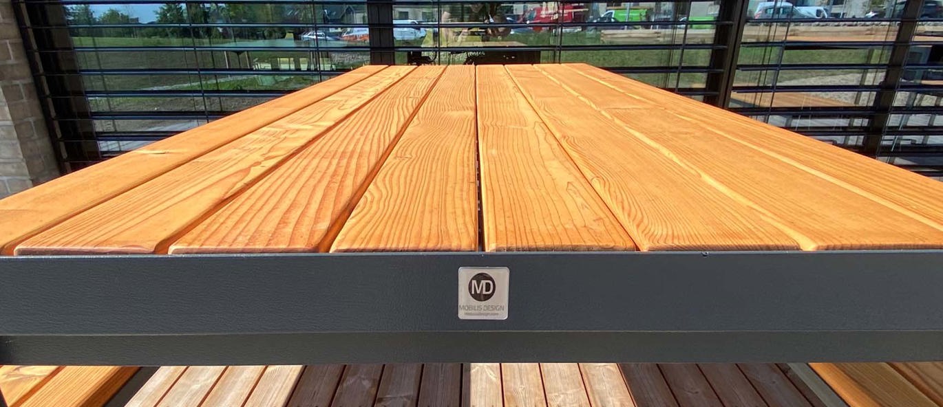 Vi erbjuder även varmförzinkat stål som ytbehandling på ramarna. ”Galvat” stål står emot rost riktigt bra och är dessutom mycket tåligt mot slitage. Metoden är dessutom kostnadseffektiv och ger en vacker finish. Skruvarna som håller ihop alla våra vackra möbler är tillverkade av rostfritt stål för en lång hållbarhet. Med vårt stora utbud av RAL-färger på stålramar i kombination med trä och betong finns det alltid en design som passar dig.