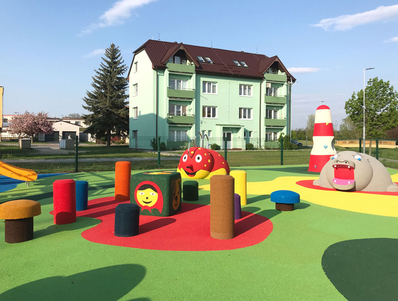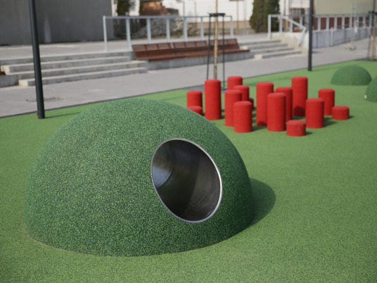 Med balanskulorna, svamparna och stubbarna skapar du enkelt en liten balansbana där barnen kan leka inte-röra-mark och samtidigt träna sin balans och koordination 🔵 🍄 🪵