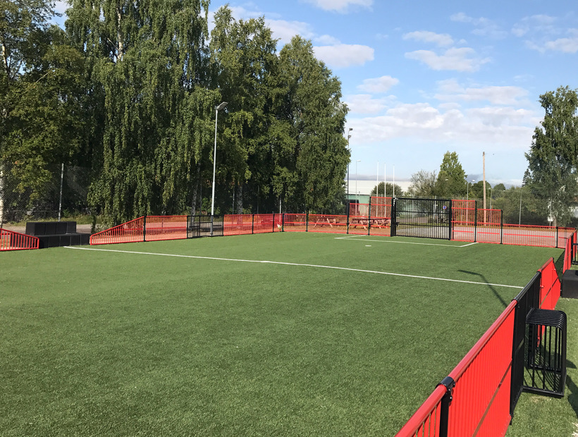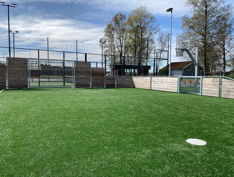Konstgräset är i stort sett underhållsfritt, i och med att det är sandfyllt. Vi erbjuder ett antal olika fallhöjder när du vill anlägga konstgräs med fallskydd på lekplatser.
