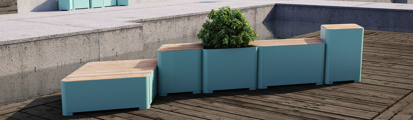 Genom att kombinera AQUILA-moduler i olika höjder med de trapetsformade planteringskärlen kan du skapa ett inbjudande flow som slingrar sig över torget utanför kommunkontoret, eller kanske runt det ståtliga trädet på skolgården. Med några cykelställ och strategiskt utplacerade papperskorgar har du en komplett mötesplats för fikasugna flanörer.