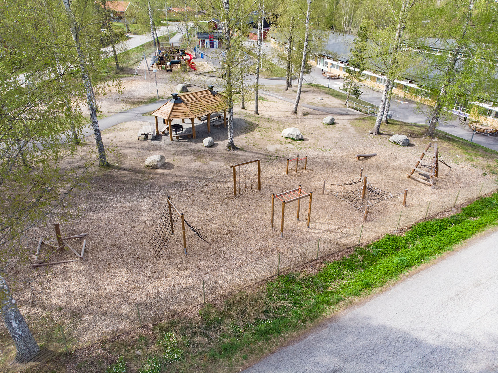 Däremot har vi många produkter utan trä som kan levereras i stort sett omgående, exempelvis Boulder Rocks, gungor, mål, basket, bordtennis, fristående rutschar, klätternät, studsmattor, bänkbord med mera.
