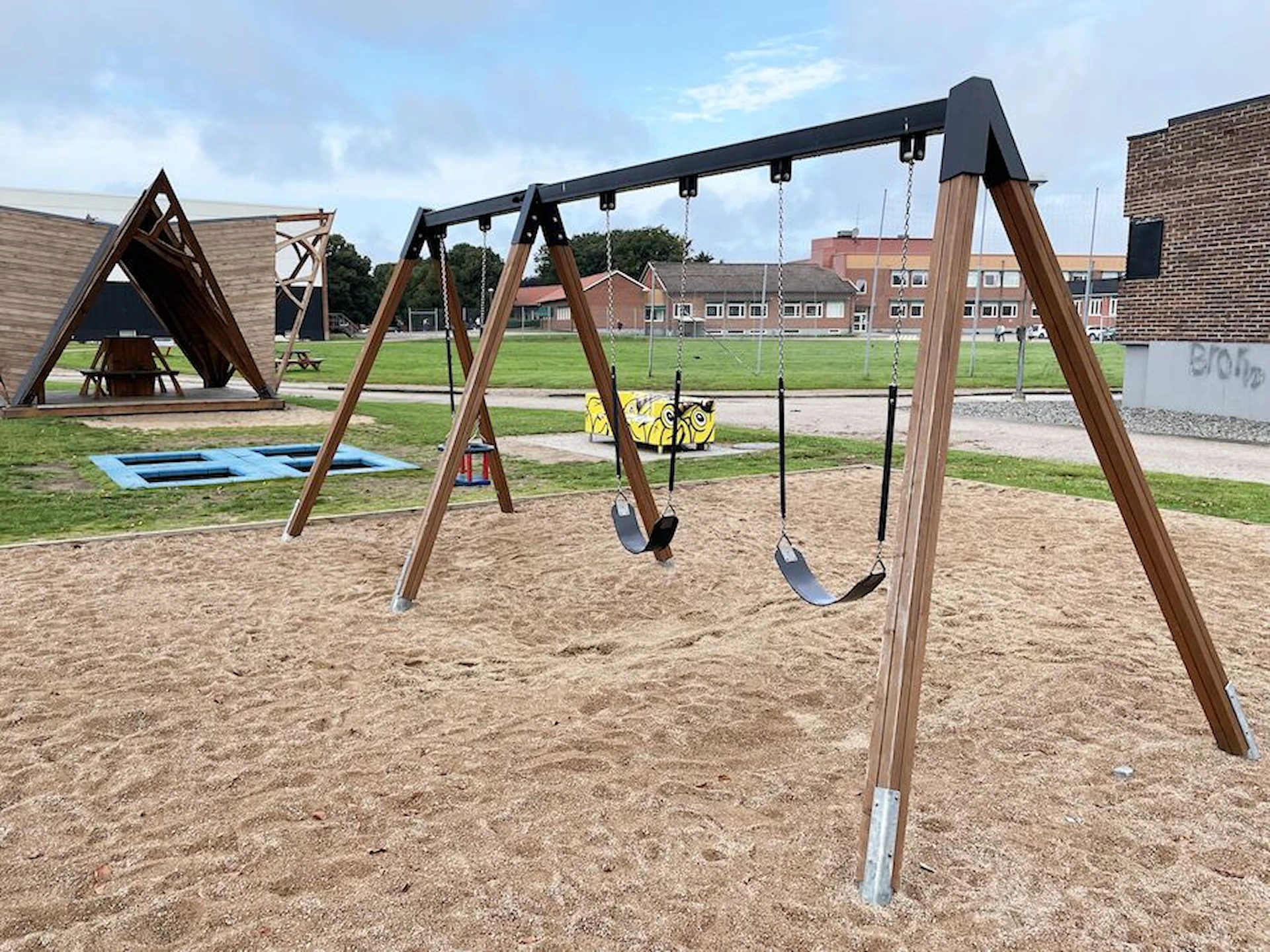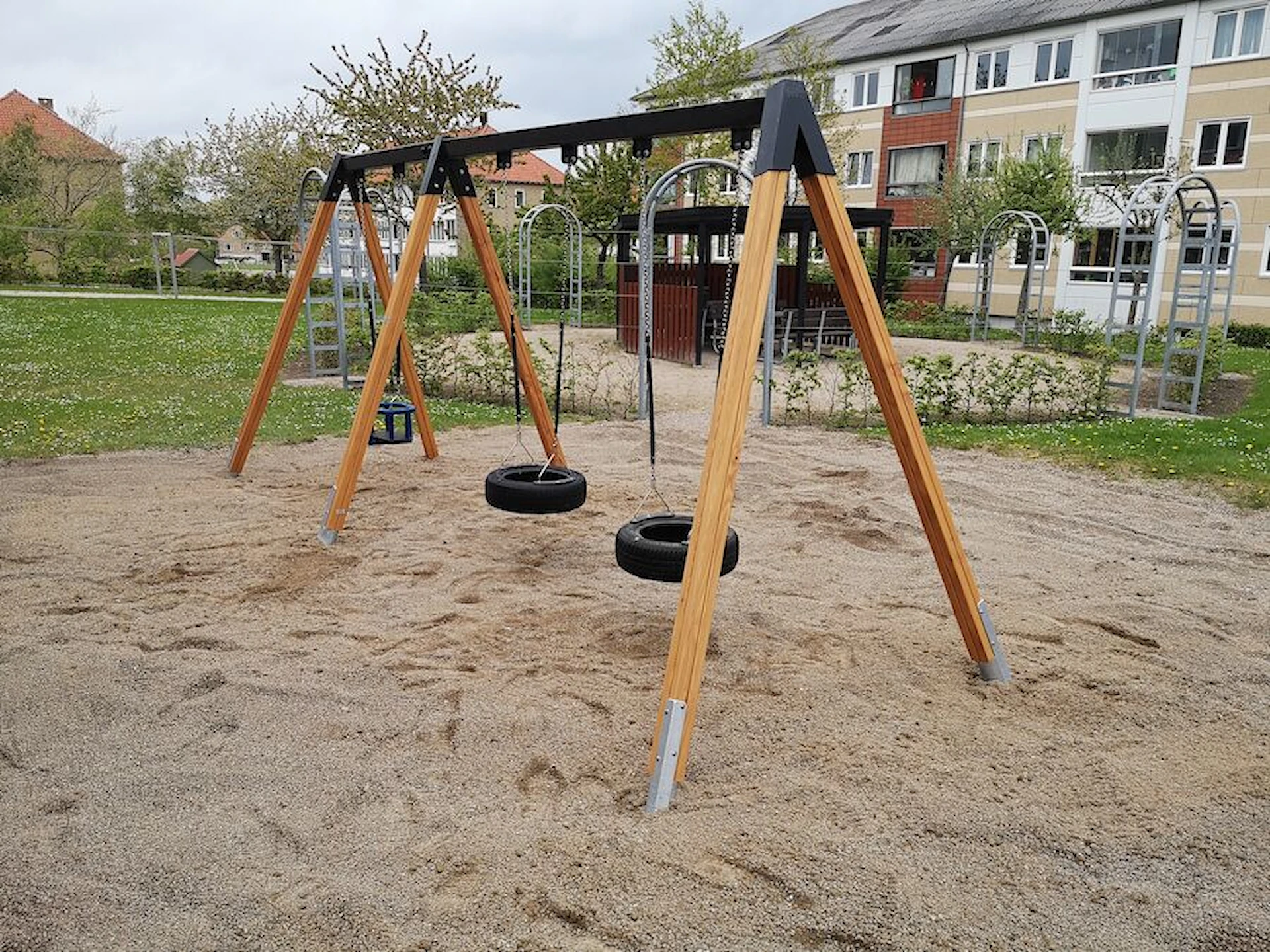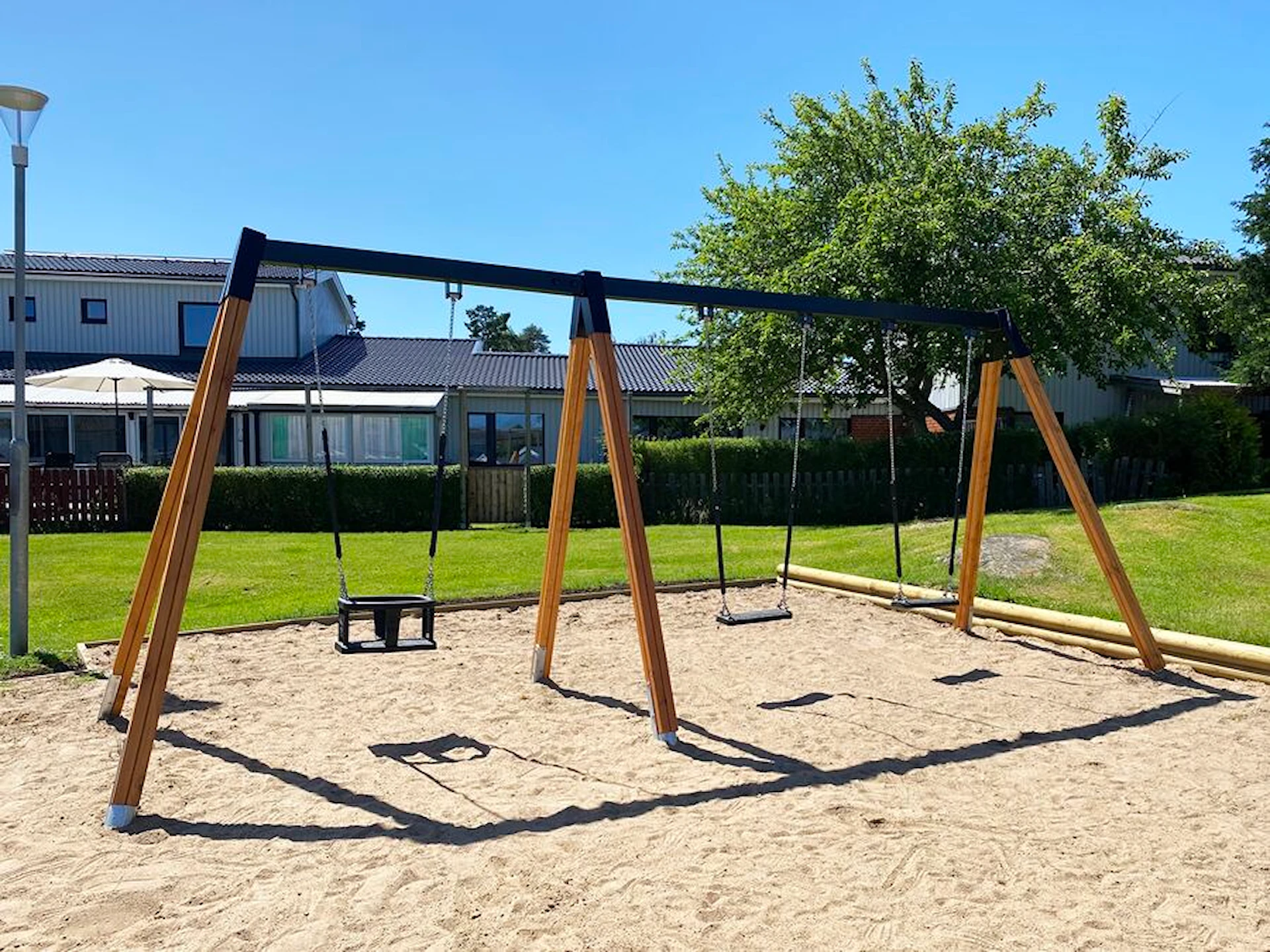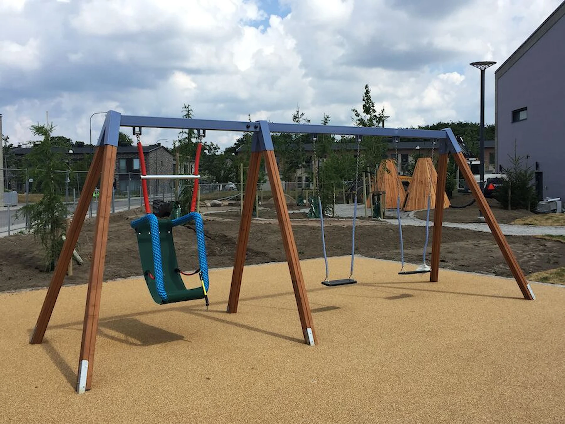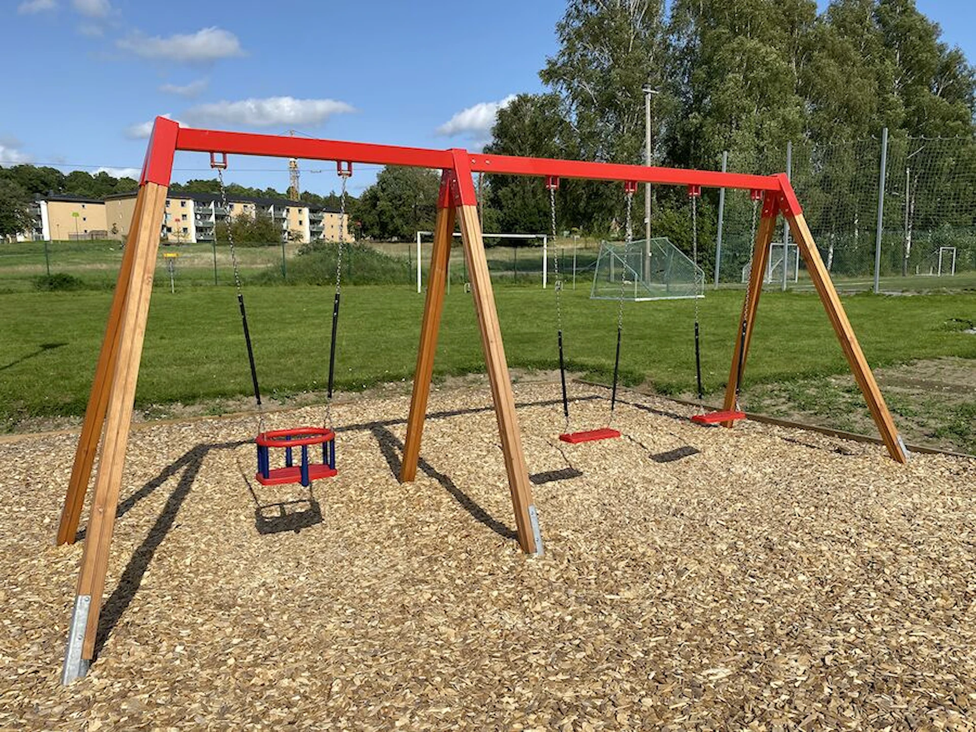 Däremot har vi många produkter utan trä som kan levereras i stort sett omgående, exempelvis Boulder Rocks, gungor, mål, basket, bordtennis, fristående rutschar, klätternät, studsmattor, bänkbord med mera.