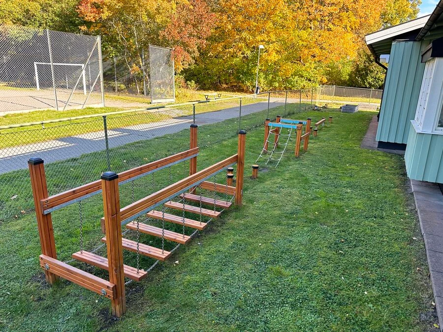 Däremot har vi många produkter utan trä som kan levereras i stort sett omgående, exempelvis Boulder Rocks, gungor, mål, basket, bordtennis, fristående rutschar, klätternät, studsmattor, bänkbord med mera.