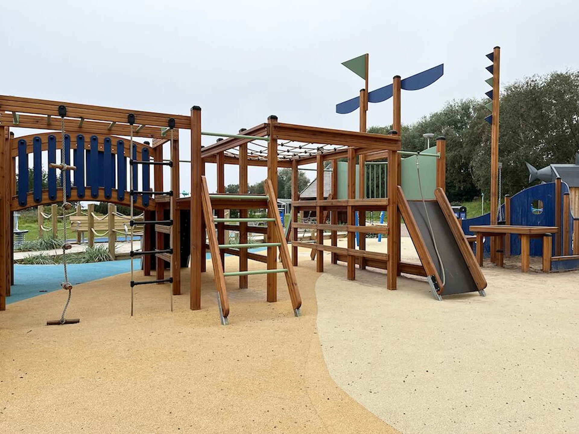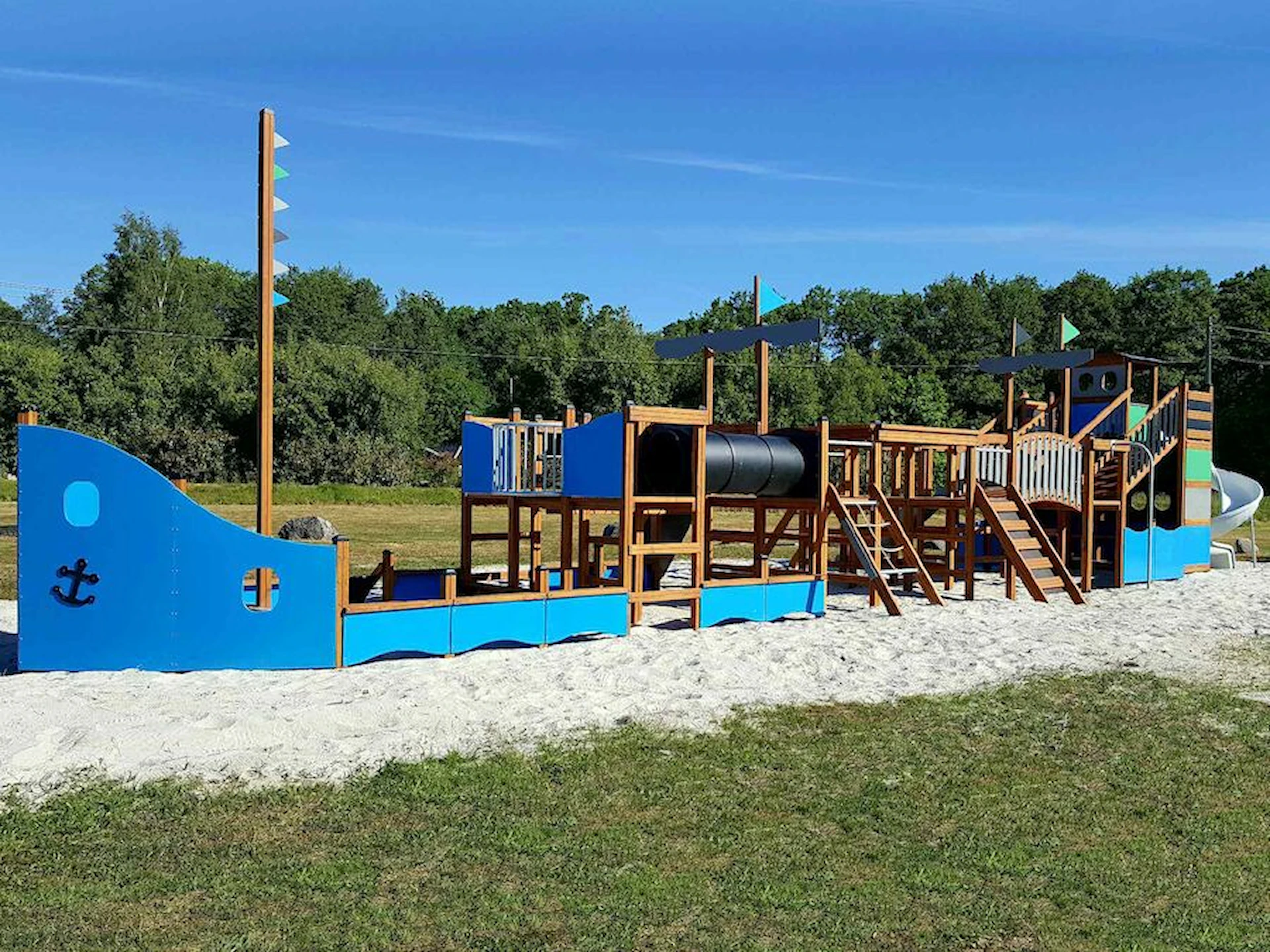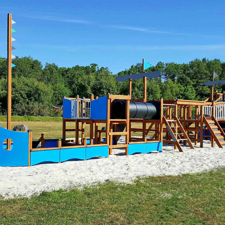 Däremot har vi många produkter utan trä som kan levereras i stort sett omgående, exempelvis Boulder Rocks, gungor, mål, basket, bordtennis, fristående rutschar, klätternät, studsmattor, bänkbord med mera.