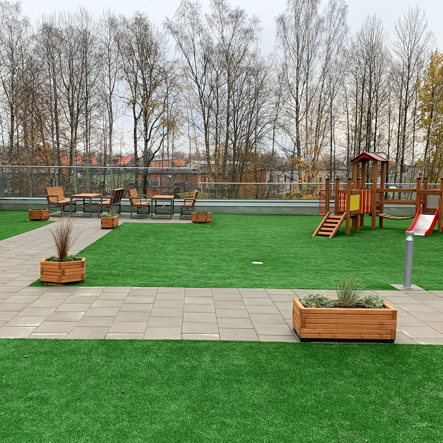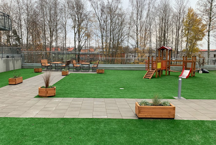 Här grillar grannarna rökfritt och brandsäkert på takterrassen