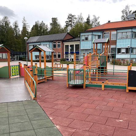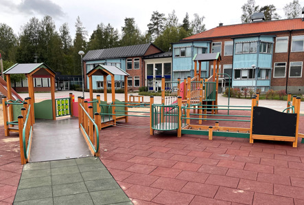 Nybyggda Hagavikskolans skolgård är fylld med aktivitet