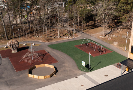 Klättra, studsa, gunga, rutscha – massor av lek på innergården