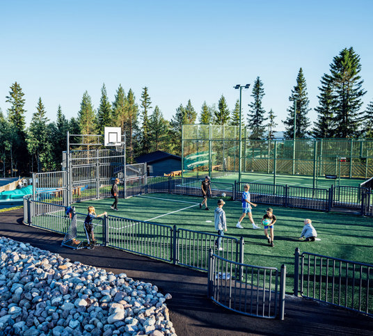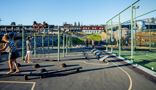 Oavsett om du föredrar bollsporter, styrketräning, klättring eller ninjaträning kan du hitta din träningsfavorit på Idre Fjälls nya utomhusanläggning.