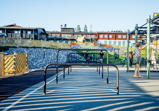 Den nya lekplatsen och träningsanläggningen har en magisk utsikt. Att träna och leka här är som balsam för både kropp och knopp.
