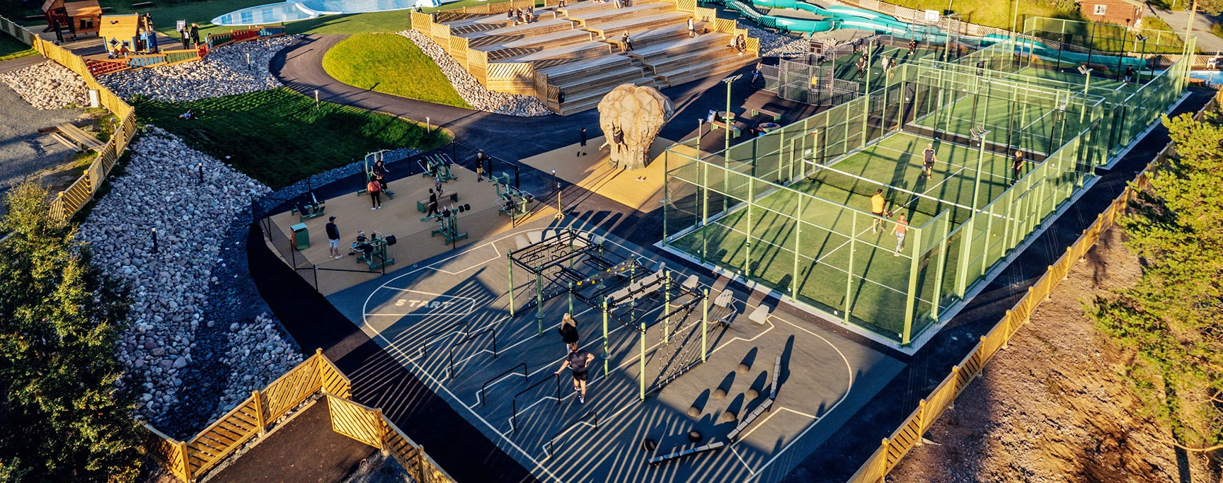 Vi på Tress arbetade tillsammans med Idre Fjäll för att uppfylla drömmen om en tränings- och lekplats för människor med olika förutsättningar. Lagom till sommarsäsongen 2022 stod det nya området klart. Här finns nu bland annat en unik OCR-bana framtagen i samarbete med Element Fitness, två padelbanor, klättersten, utegym, badmöjligheter, lekplats och en multiarena.