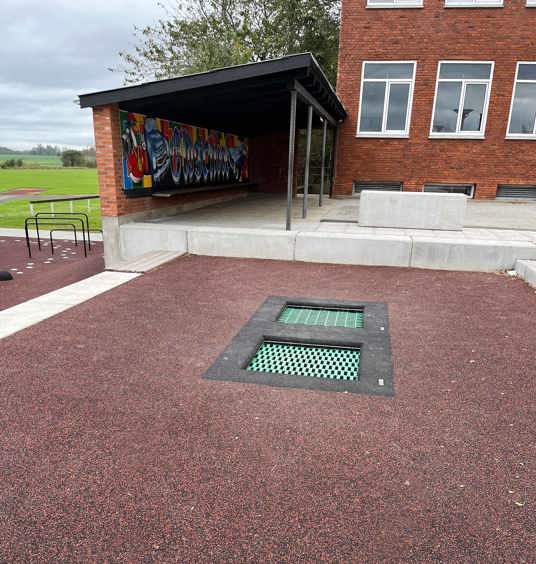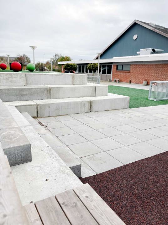 Vision var att skapa en samlingsplats mellan skolan och idrottshallen genom att väva samman befintliga – men separata – uteområden till en gemensam, aktiv yta.