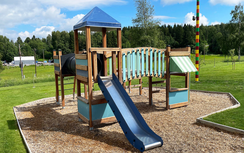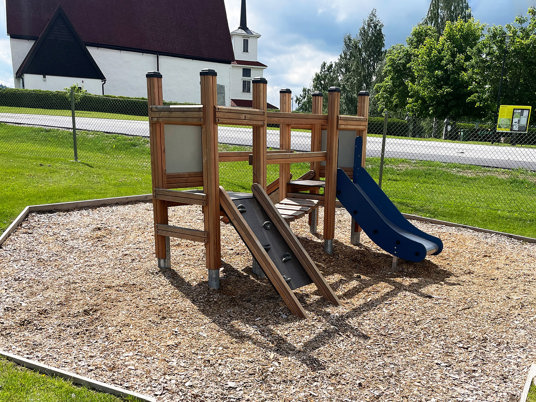 Svenska Kyrkan ringde vår säljare Jesper och berättade att dom fått ett arv från en församlingsmedlem som gått bort. Kvinnans önskan var att pengarna skulle gå till att göra något fint för ungdomarna. Efter ett möte, lite skissande och förslag blev resultatet en riktigt trevlig utemiljö med både lek, utegym och sittytor.