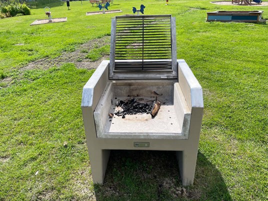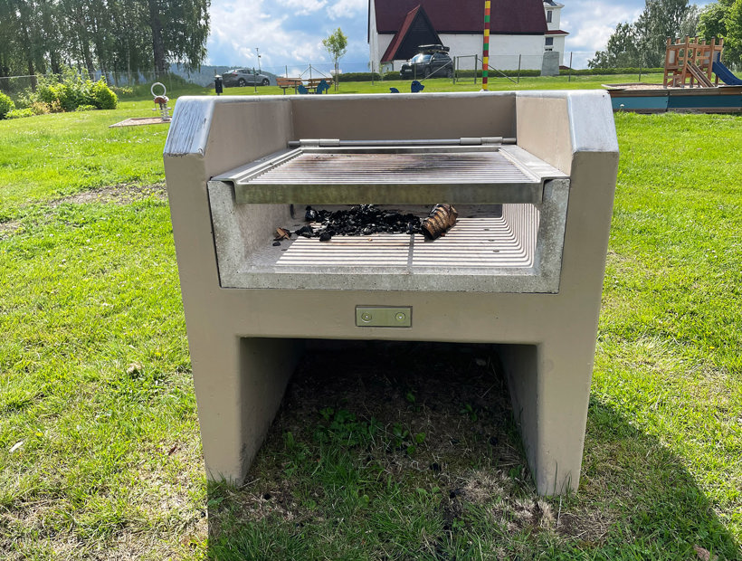 Här kan många trevliga grillkvällar hållas. Glöden Grill är tillverkad av betong och är riktigt bastant och hållbar. Det fällbara gallret gör det enkelt att fylla på kol.