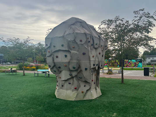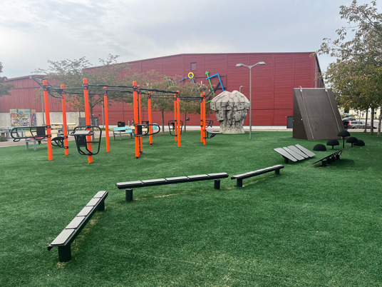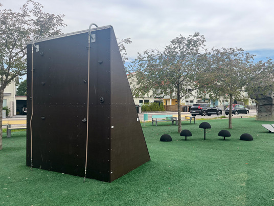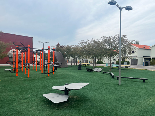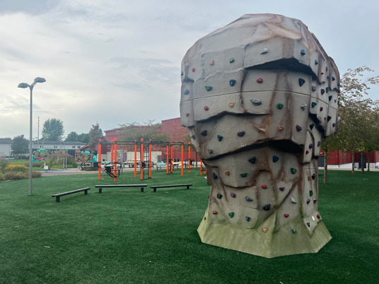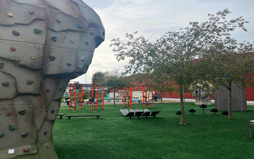Ta chansen att prova på bergsbestigning, testa parkour eller kör ett styrkepass på gymmet. Över 800 kvm konstgräs gör hela området underhållsfritt och inbjudande.