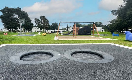 Lekplatsen är utrustad med både stora och små öar med olika syften. Det finns till exempel en ö med gungor, en med en stor lekställning, en med studsmattor och en för streetsport. Här kan många barn leka samtidigt!