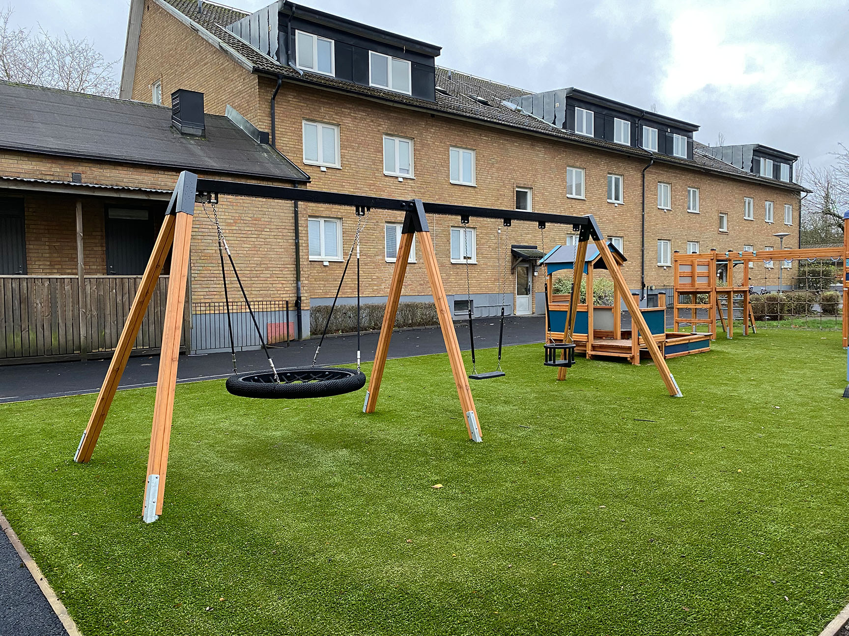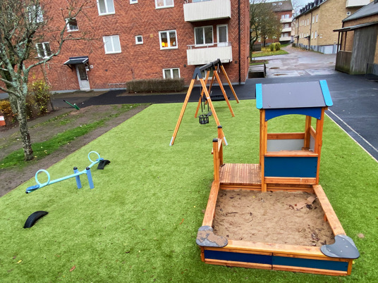 De boende hade länge efterfrågat en lekplats som ligger närmare bostadshusen för att enkelt kunna gå ut och leka i närområdet. Vi på Tress levererade en komplett lekplats inklusive montering och konstgräsläggning. Vi skapade en trevligare innergård med mer liv och rörelse där grannar kan mötas och barn kan träffa nya kompisar.