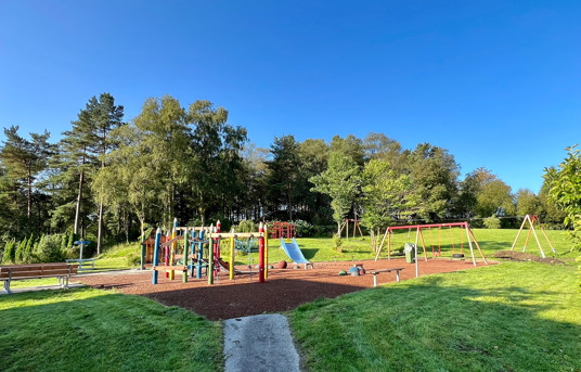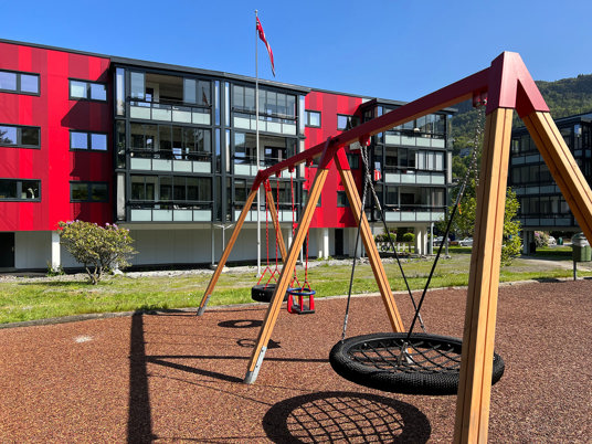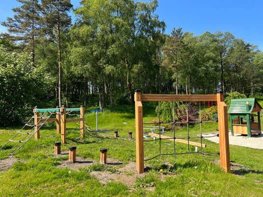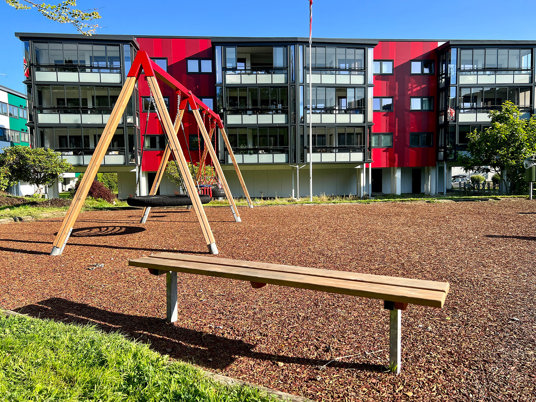 På lekplatsen i Lynghaug BRF har de boende nu gott om plats att leka och ha kul, men också att slå sig ner i en social zon.