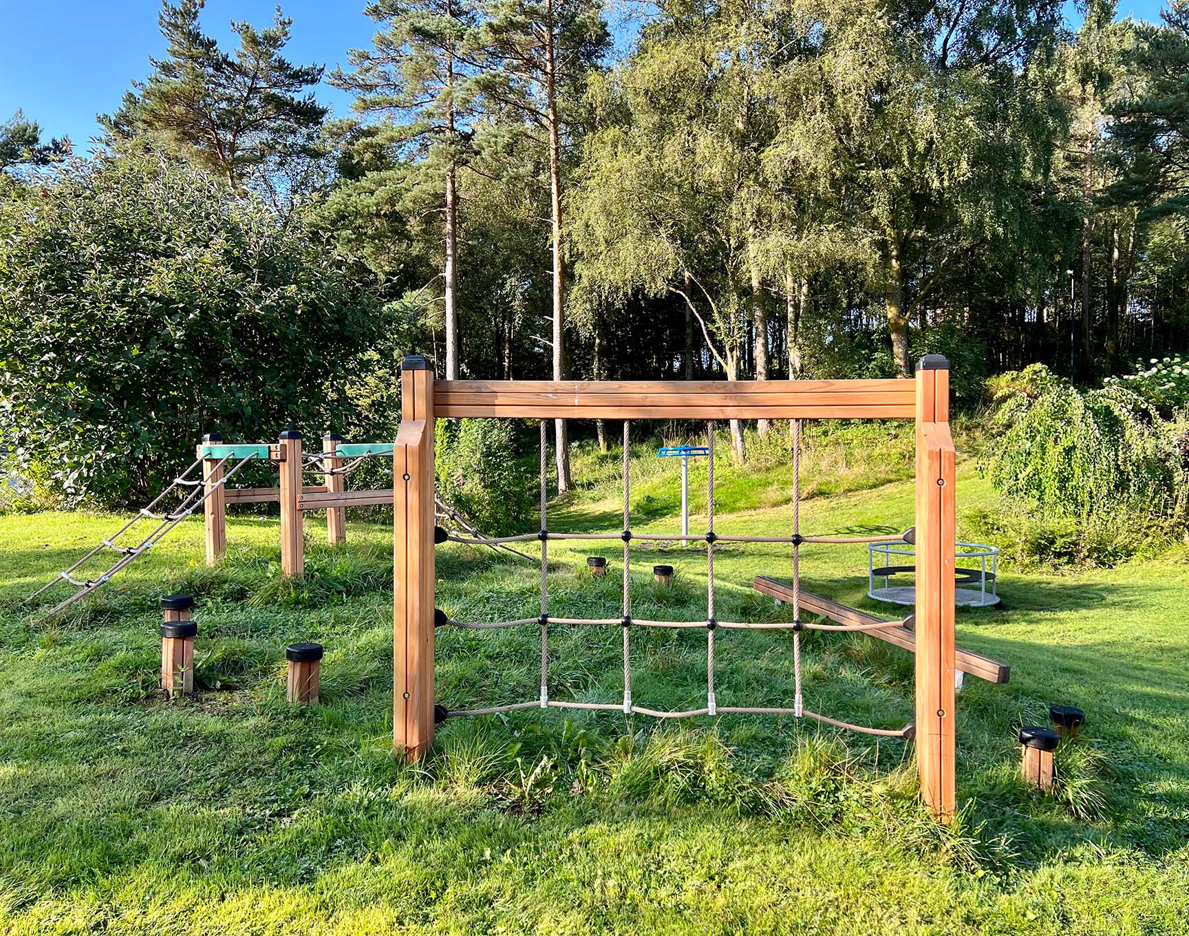 Parkourställningen ger möjlighet att ta sin träning till nästa nivå, både för de erfarna och nybörjarna. Balanslinan, karusellen och marktrampolinen är en säkra vinnare i de flesta åldersgrupper och inbjuder till samarbete och inkluderande lek i bostadsrättsföreningen.