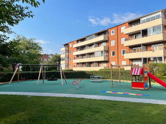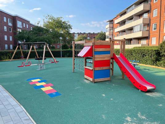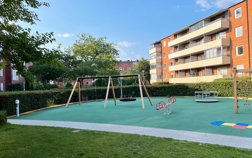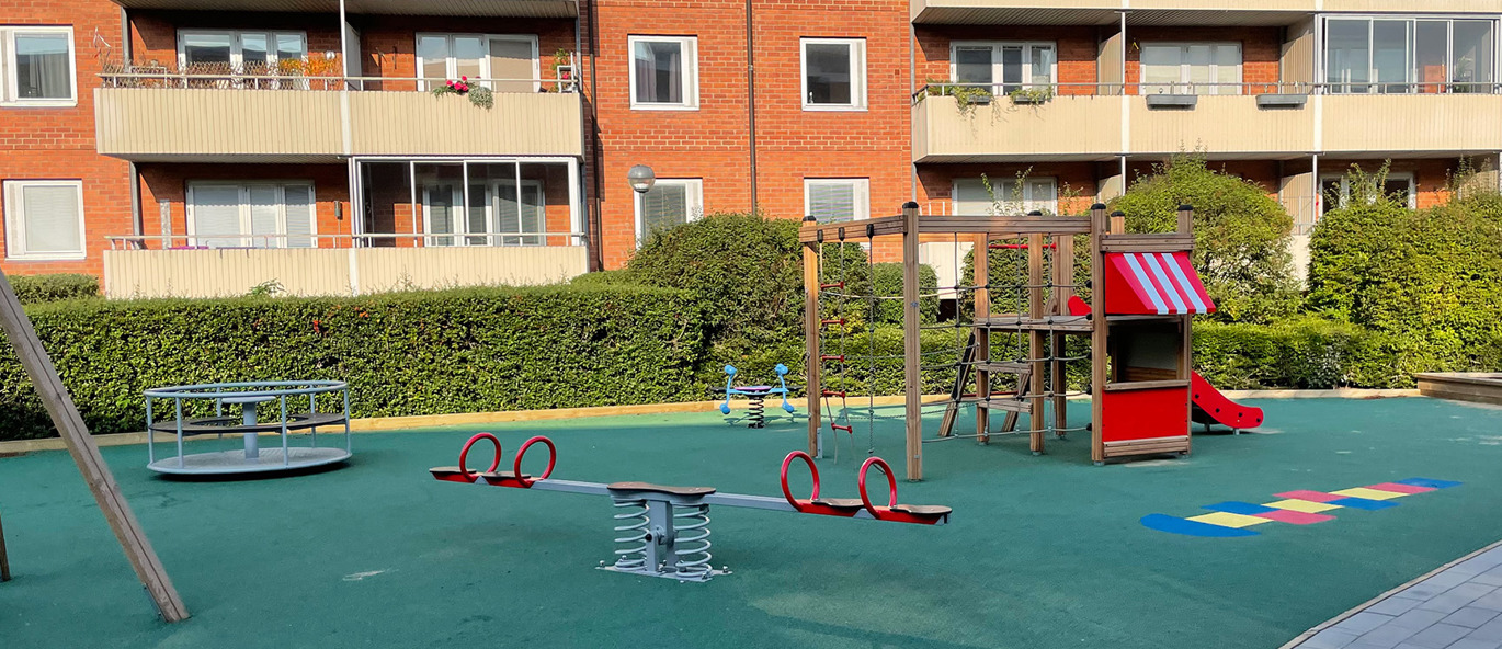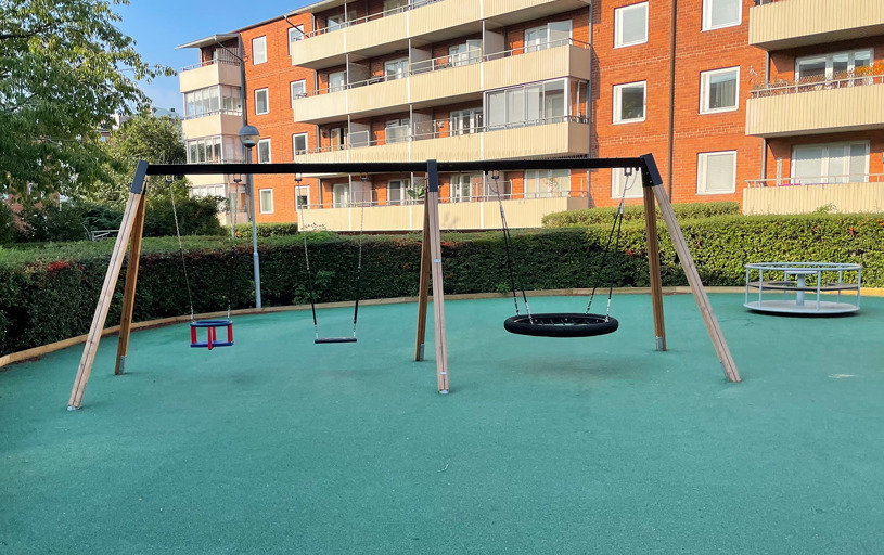 Resultatet blev en helt upprustad lekplats där alla barnen i bostadsrättsföreningen kan leka säkert tillsammans. Och en nöjd BRF som sparat både tid och pengar.