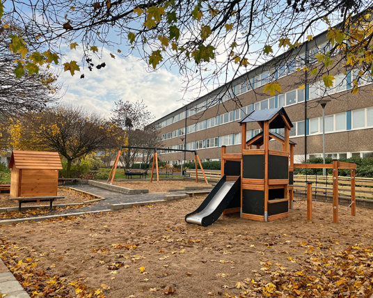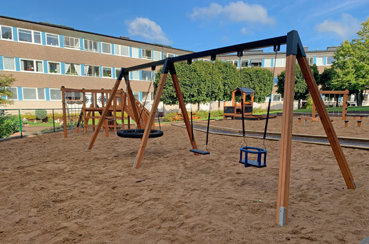 HSB BRF Anneberg var i behov av att rusta upp sina lekplatser och tog kontakt med sin lokala fastighetsförvaltare LJ Mark, som tillsammans med Markus på Tress åkte ut till platsen för att titta på ytorna, ta mått och börja skissa på nya lekplatser.