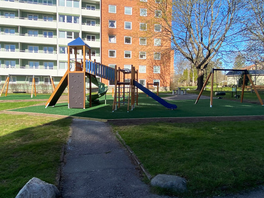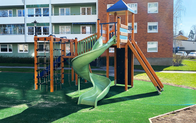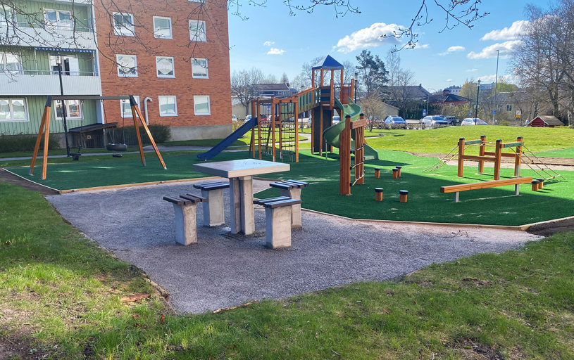 Bostadsrättsföreningen hade planer på att utveckla och göra om sin befintliga lekplats redan under 2021. Sedan dröjde det några innan det blev ett beslut, men sen gick det fort. Kristoffer som hade upprätthållit kontakten genom åren stod redo med ett förslag på den nya lekplatsen och mötesplatsen.