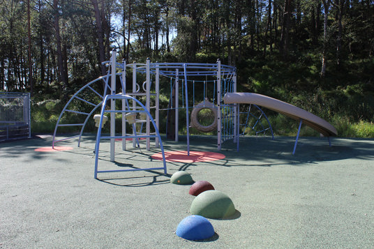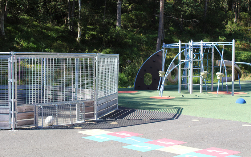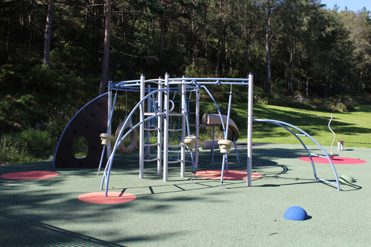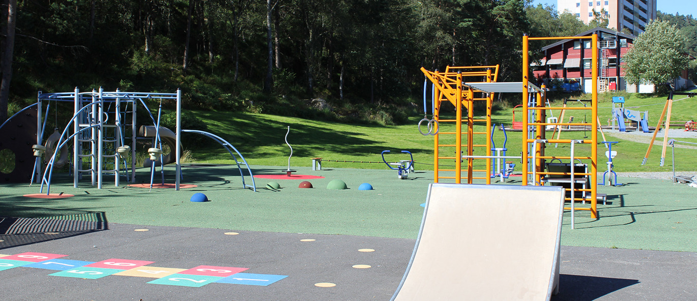 Det har använts många härliga färger på lekutrustningen och ytorna vilket ger ett levande och iögonfallande uttryck, men som samtidigt smälter in fint i omgivningen.