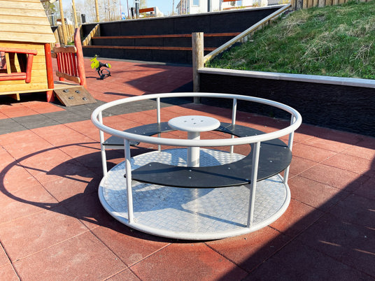 En härlig mötesplats för både ung och gammal. Du kan klättra, snurra, balansera, gunga och ta en paus när det behövs. Fallskyddsplattorna ger en enhetlig och säker lekplats.