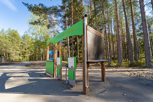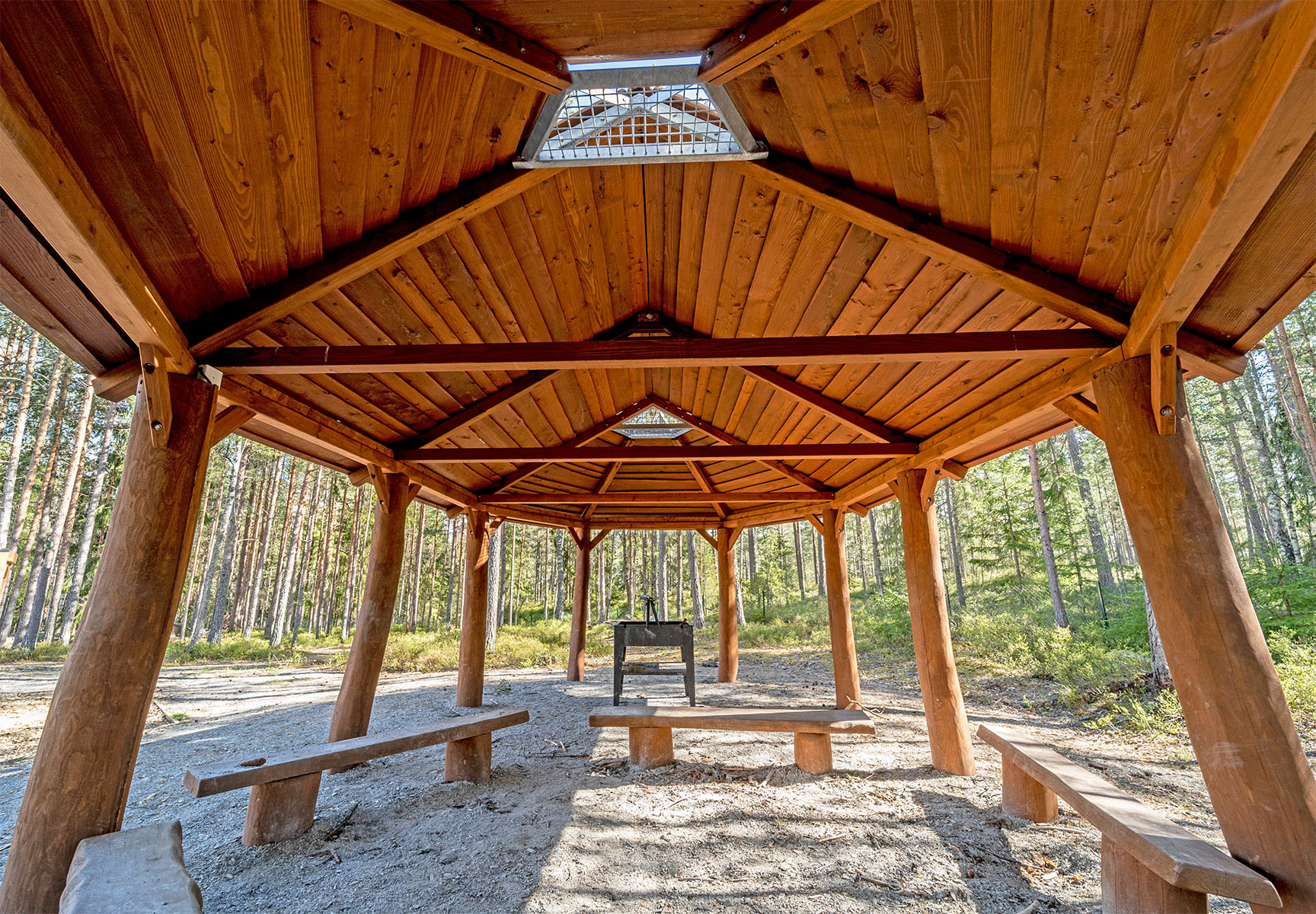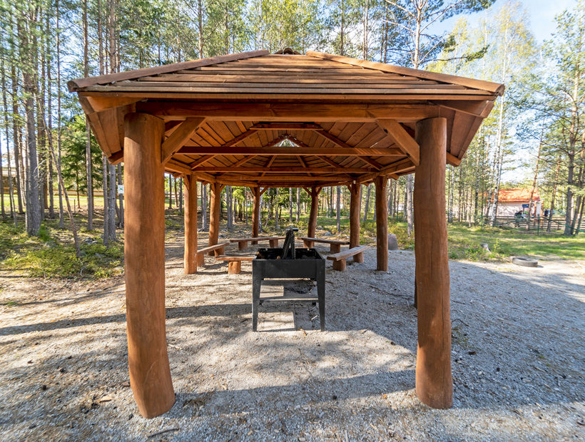 Den givna samlingsplatsen är numera det stora grillhuset. Här finns plats för både barn och vuxna när det är dags för samling, fika, lunch eller kanske en sångstund. Med praktiska rejäla sittstockar är det också en härlig plats för umgänge under regniga dagar. Nu startar vi grillen!