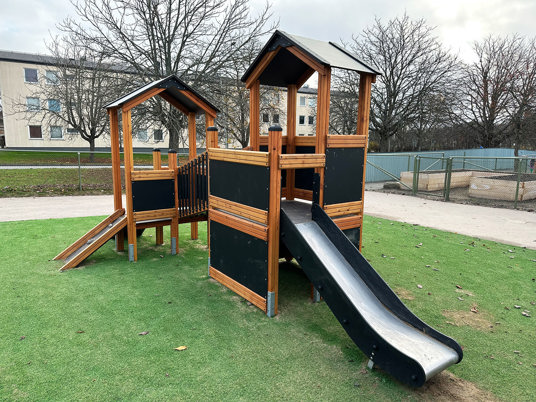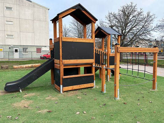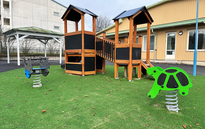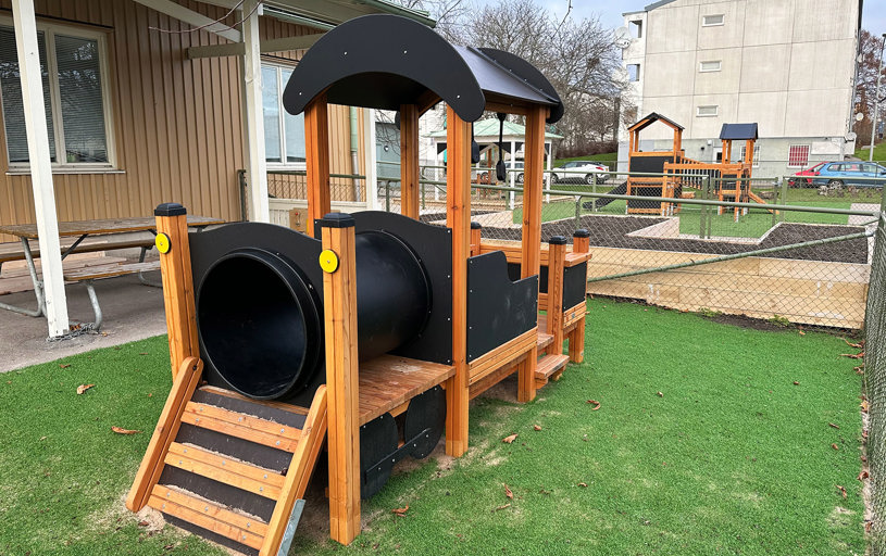 En komplett förskolegård levererades och monterades. Väldigt smidigt med en enda leverantör, tyckte kunden.