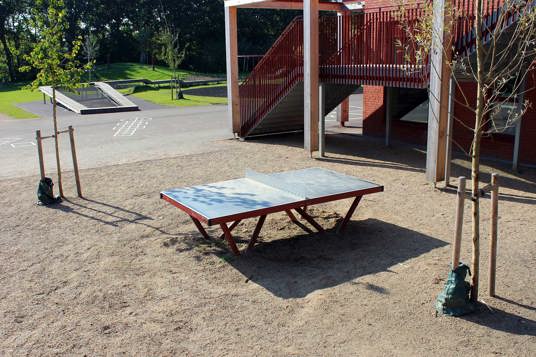 Inte långt från lekplatsen har skolan även fått ett imponerande sportområde på Gødvads Torg, med bland annat en multiarena och en panna arena. Spontanidrottsplatsen skapar möjligheter för ännu fler aktiviteter och mer gemenskap. Tillsammans med skolan bidrar torget till att göra området till en levande mötesplats. Läs mer om spontanidrottsplatsen här!