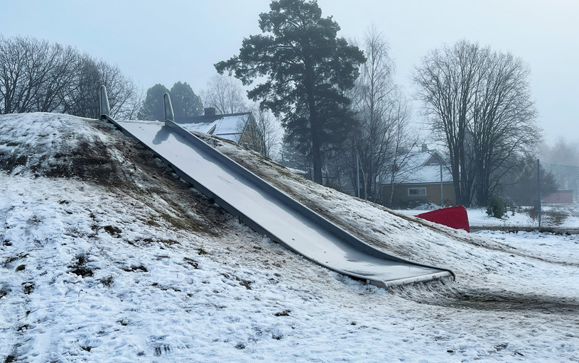 Som ni kan se på bilderna är vädret inte alltid soligt och varmt. Ibland är det kallt, dimmigt och isigt, ändå kan barnen vara utomhus och rasta av sig under de ljusa timmarna. Barnen bryr sig oftast inte om vädret, bara de har roliga och spännande lekutmaningar på skolgården, så är de glada. Det går ju att åka rutschkana och spela basket även när det regnar.