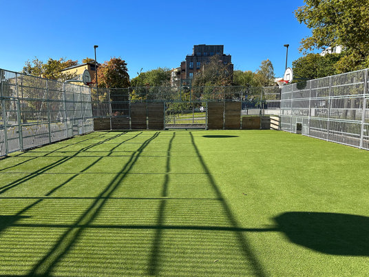 Med stor variation på lekutrustningen och idrottsutbudet i den höga multiarenan kan alla barn hitta något att göra på rasterna. Skolgården används även på kvällar och helger av de boende runt omkring skolan.