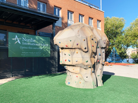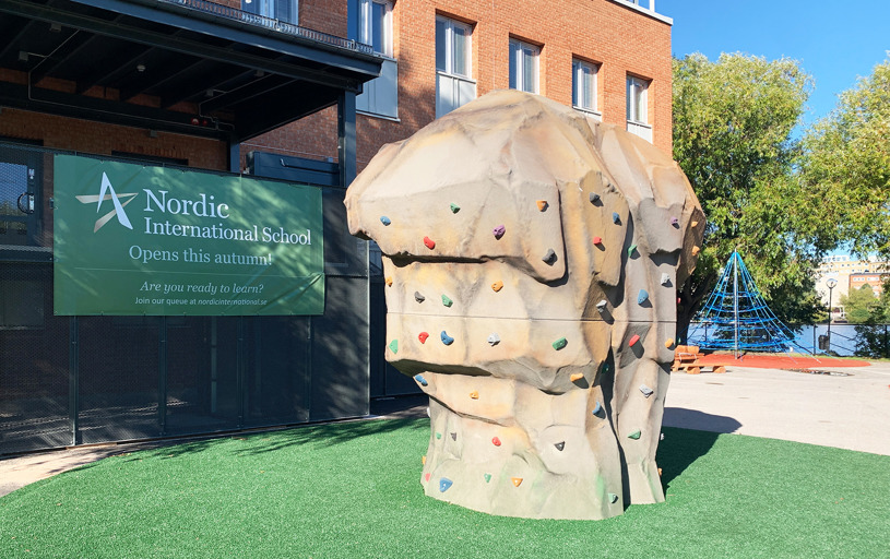 Till skolgården på Nordic International School på Stora Essingen i Stockholm önskades något nyskapande. Genom bra samverkan med beställaren kunde vi tillsammans bolla idéer, dela med oss av vår gedigna erfarenhet och möta de önskemål som fanns.
