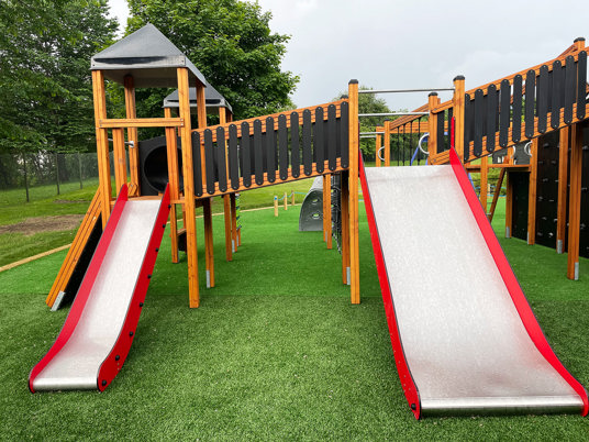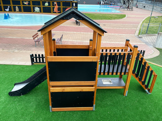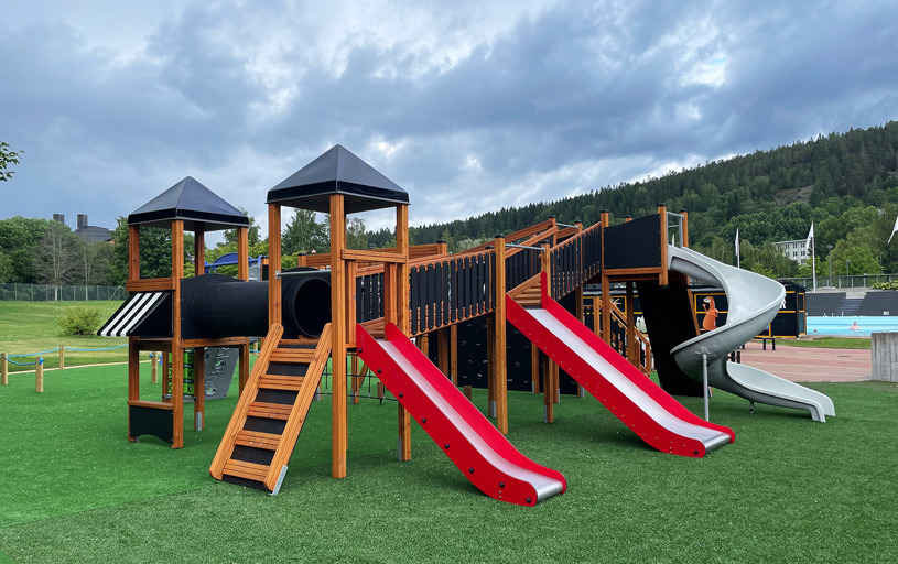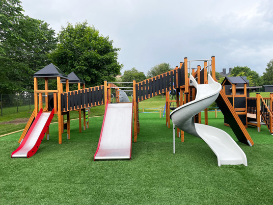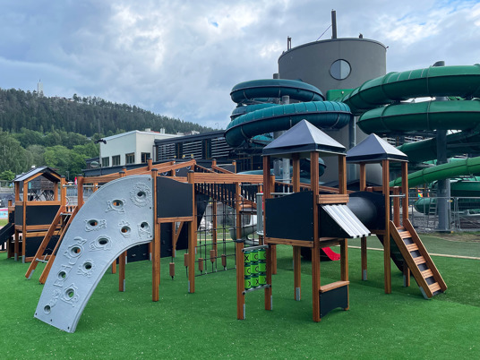 Under 2023 hjälpte vi på Tress Sundsvalls kommun med ett av Sveriges största utegym bredvid Himlabadet. Du kan läsa mer om det projektet här. Nu var det dags för den gamla lekplatsen att få en rejäl uppryckning. Här ståtar nu en av våra större lekställningar, Mastodont, tillsammans med Sommarhuset.