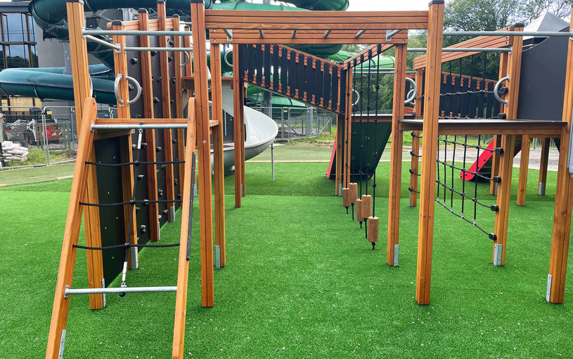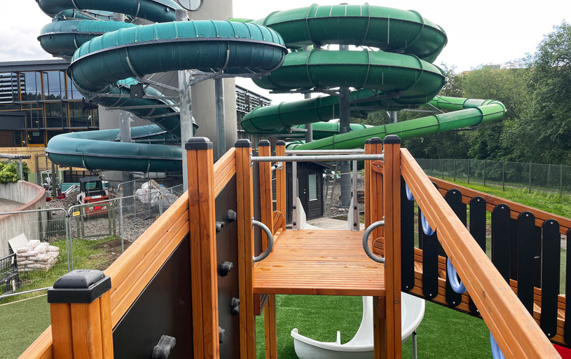 Här blev det en rejäl uppryckning från den gamla lekplatsen. Med de nya stora lekställningarna kan många barn leka samtidigt. Perfekt när de tröttnat på att bada.