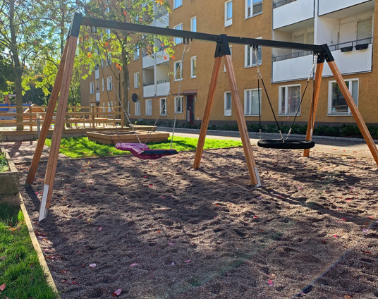 Intill lekställningen placerades flera kluriga spel och pussel för barn i olika åldrar. Här kan de spela själv eller utmana kompisarna på luffarschack! Flera olika gungor och en mysig fikahörna anlades också. Här kan hela familjen samlas för gemensam fika eller grillning. Även sjörövare behöver ju mat i magen.