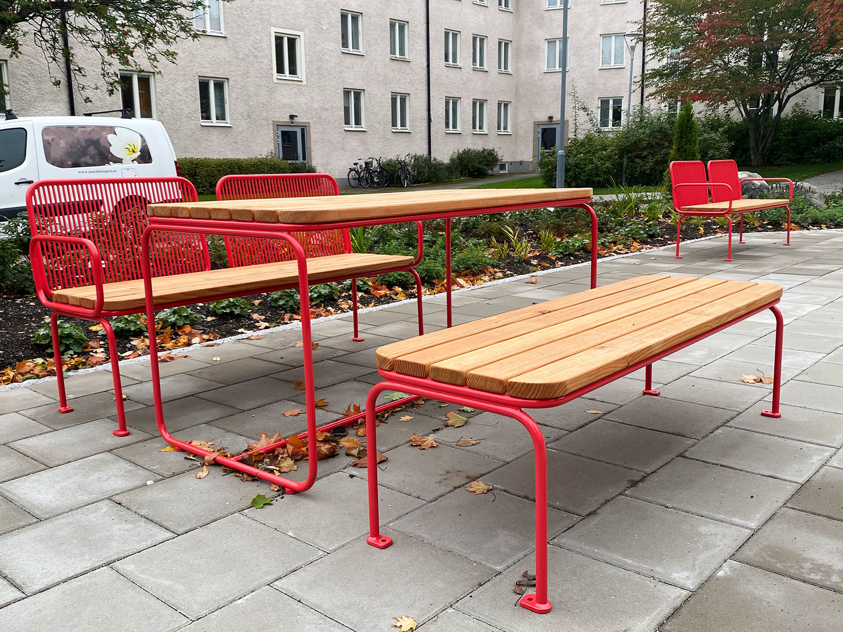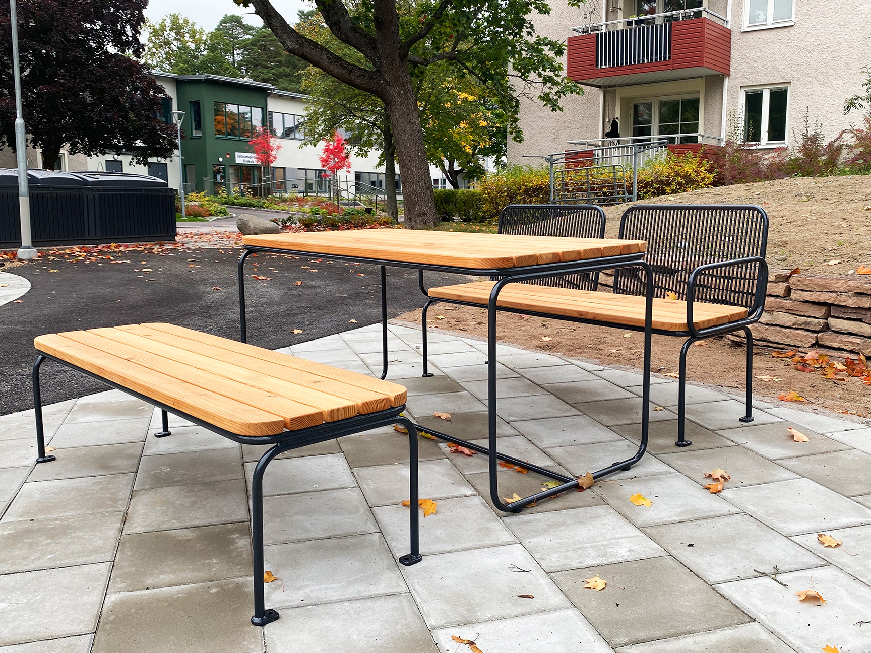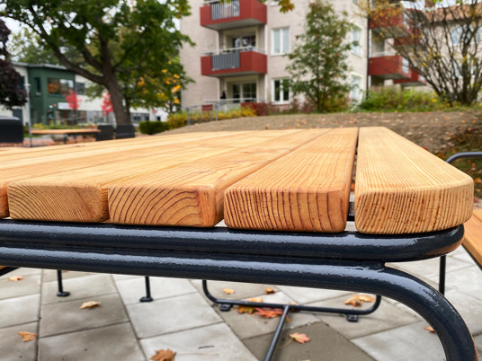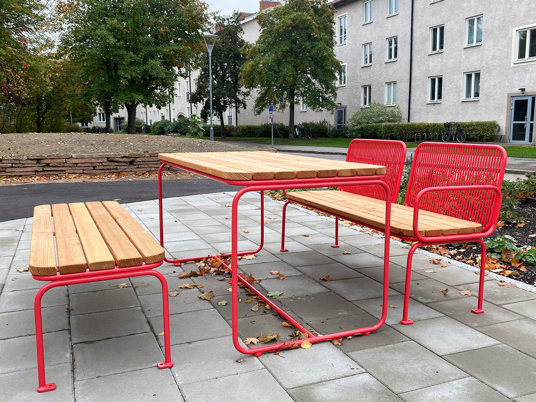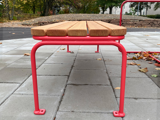 Eller varför inte som specialbänk till barnen som gärna spiller och kladdar lite extra. Det är enkelt att torka av ketchup från stålrören.