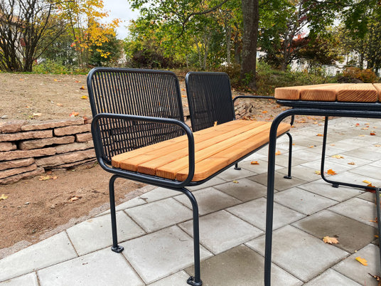 VIRGO-bänken utan träsits passar lika bra som sittplats som avställningsyta vid grillen. Perfekt plats för salladsbordet och grillsåserna.